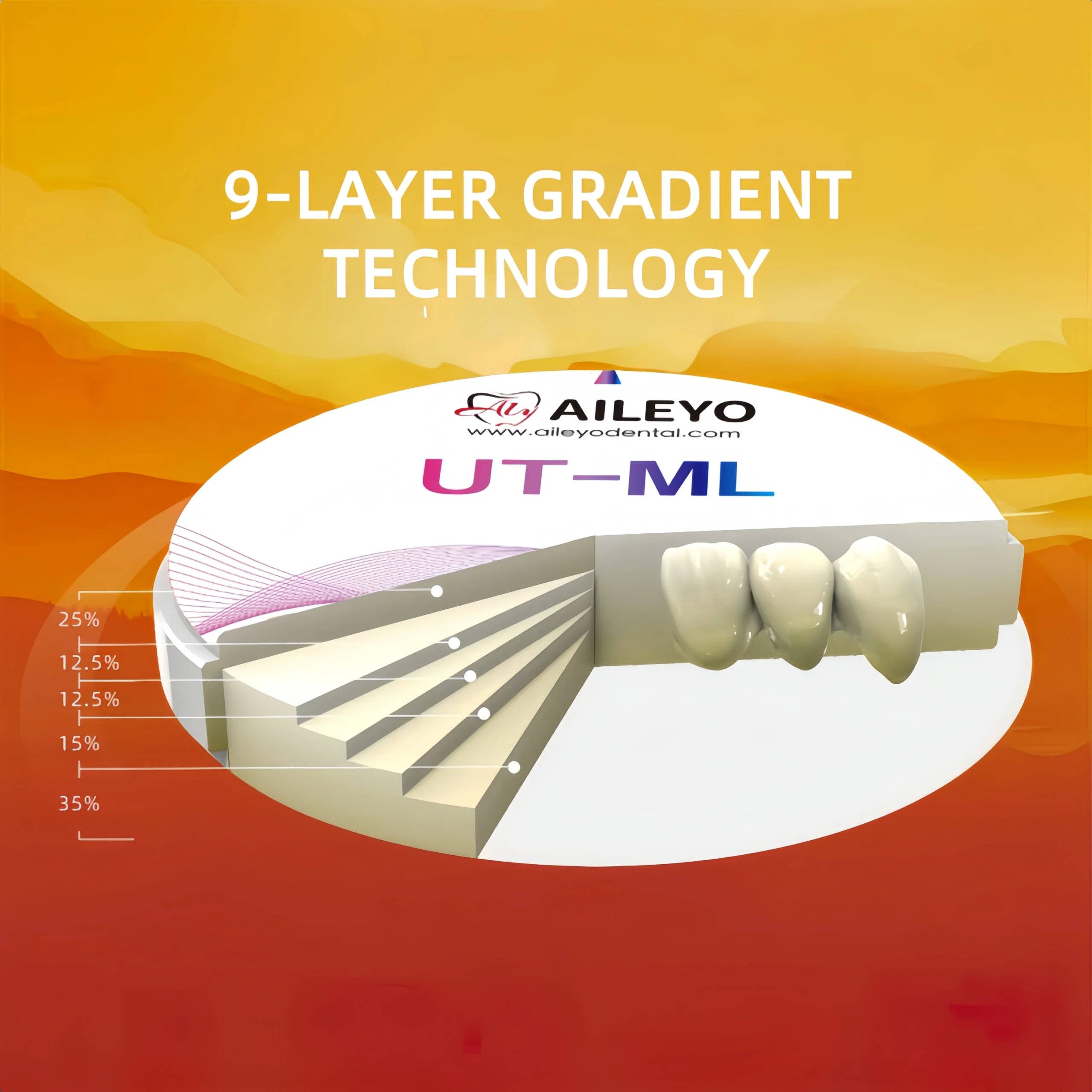 Engineered for high-end anterior restorations, UT-ML offers a remarkable blend of translucency (49–53%) and natural gradient shading across 9 layers—no staining required. With 600–800 MPa flexural strength, it’s ideal for crowns, veneers, and inlays where beauty and precision matter most. Available in VITA 16 and Ivoclar B4 shades, UT-ML delivers consistent, lifelike results that turn smiles into statements.